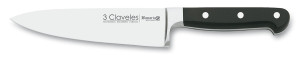POM is the acronym for polyoxymethylene, a high-resistance thermoplastic synthetic material. Several 3 Claveles collections have handles made of this material: Forgé, Bavaria, Toledo, Uniblock and Pom. Knives with POM handles are very resistant to wear and tear. They do not lose their shape or crack, even when exposed to high temperatures. POM knives have a soft texture that provides a comfortable and secure grip. They are easy to clean and dishwasher safe.