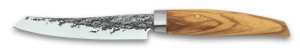 La nueva colección cuchillos Japoneses ofrece cuchillos con hojas curvas y acabado martilleado. Su mango de madera de olivo aporta elegancia y un tacto suave que mejora la experiencia culinaria.